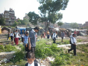 In Kathmandu, right outside the boudha area, there’s a slum mainly inhabited by people coming from the state of Bihar in India. Families come for seasonal work in Nepal, earn a bit a of money then go back to their village in India.